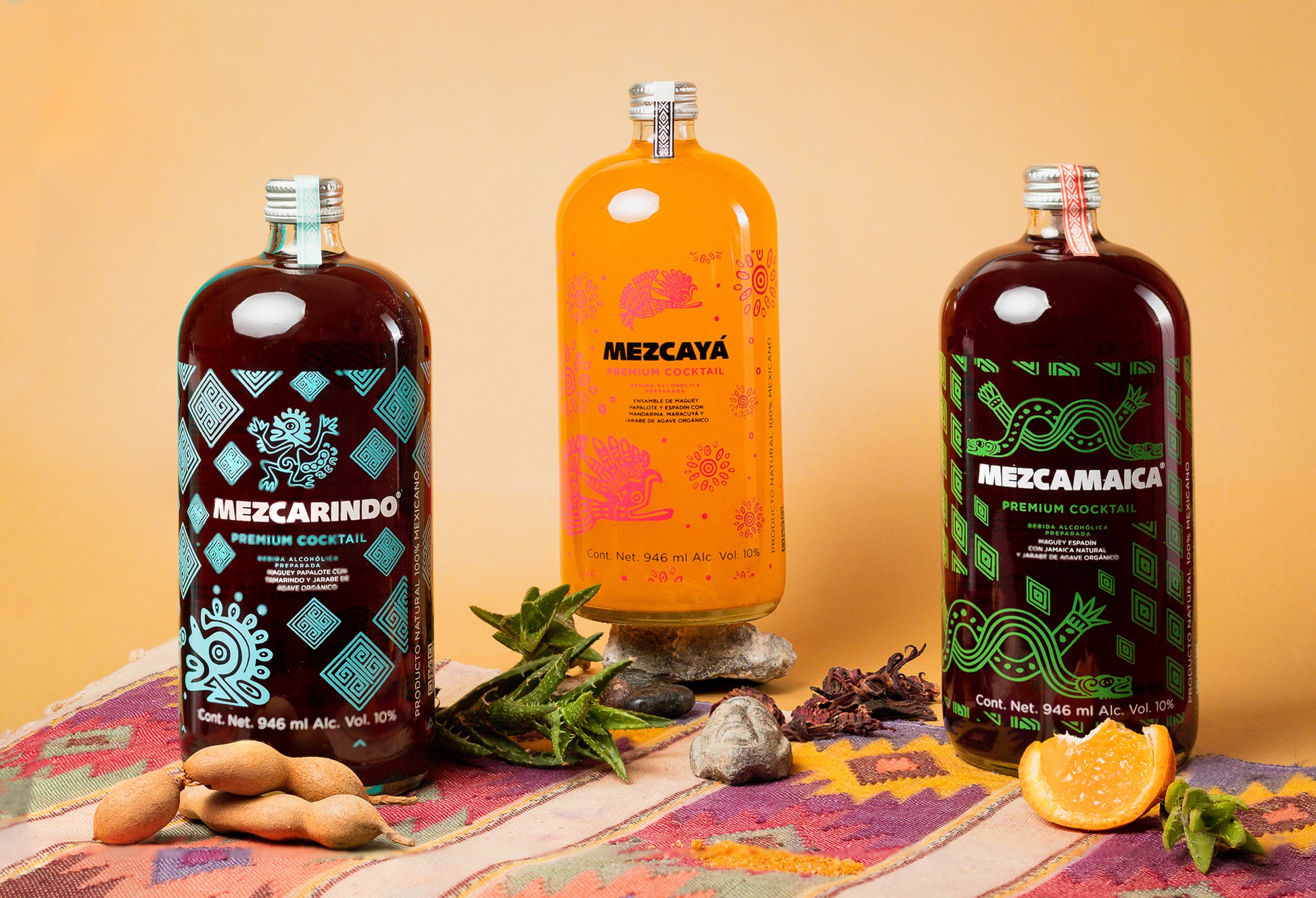 The combined Mezcajota includes: 2 bottles of Mezcamaica, 2 bottles of Mezcarindo and 2 bottles of Mezcayá.
