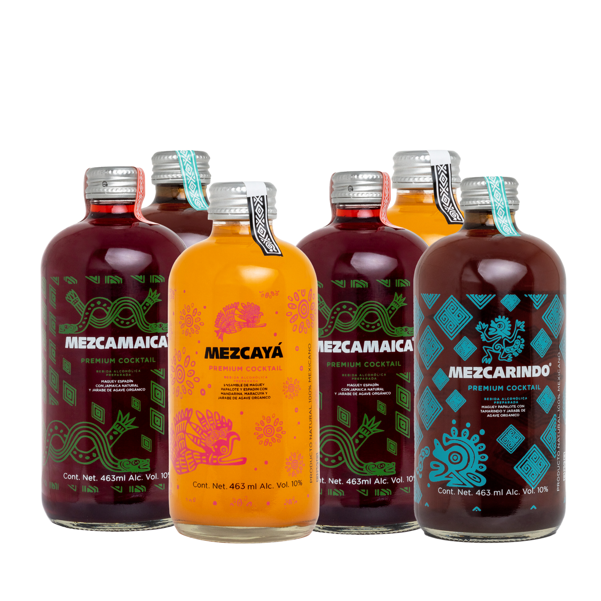 Caja combinada 463 ml 2 Mezcamaica, 2 Mezcaya, 2 Mezcarindo 6 botellas Premium Cocktail